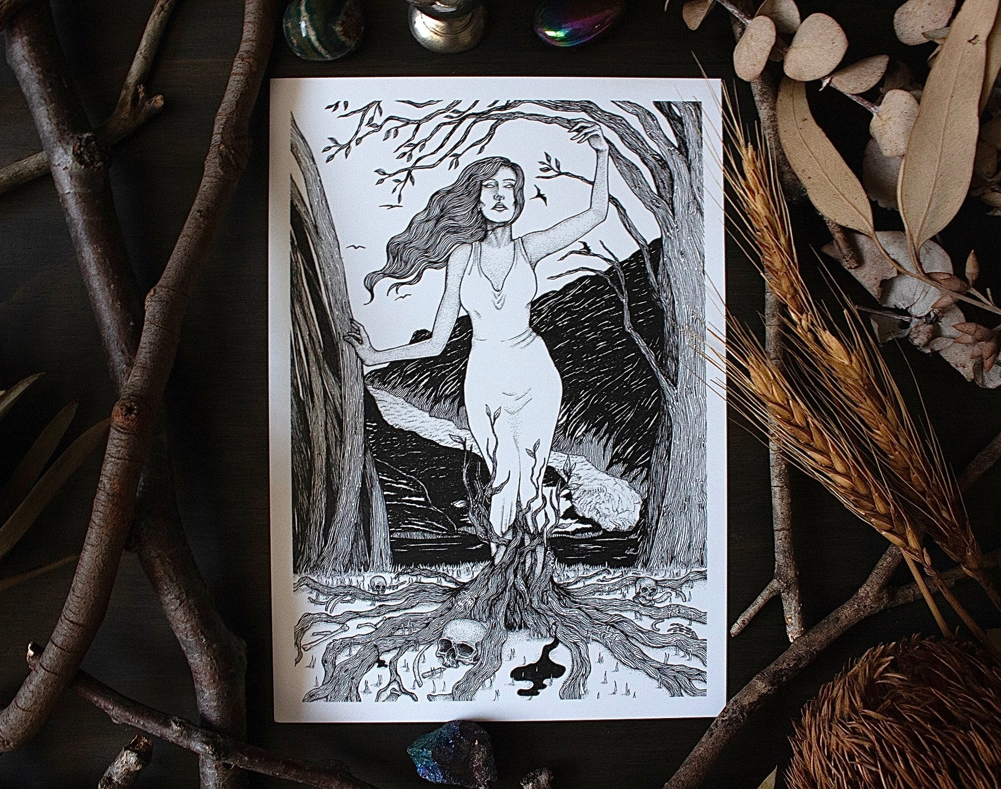 This illustration of Gaia was featured in the book Reclaim Your Dark Goddess by Flavia Kate Peters.