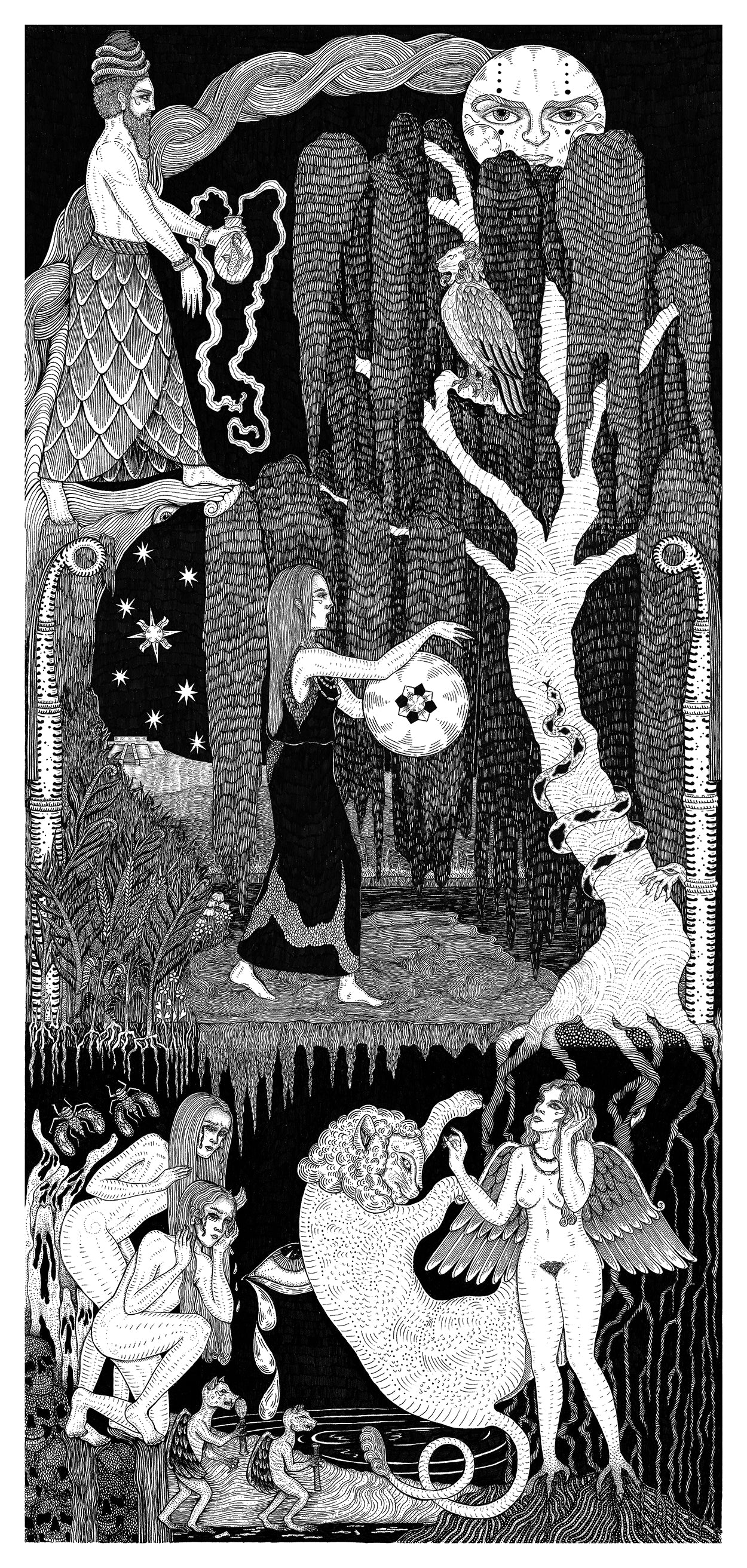 "The Descent of Innanna" illustration was originally hand-drawn using fineliners, it took approximately 32 hours to complete.